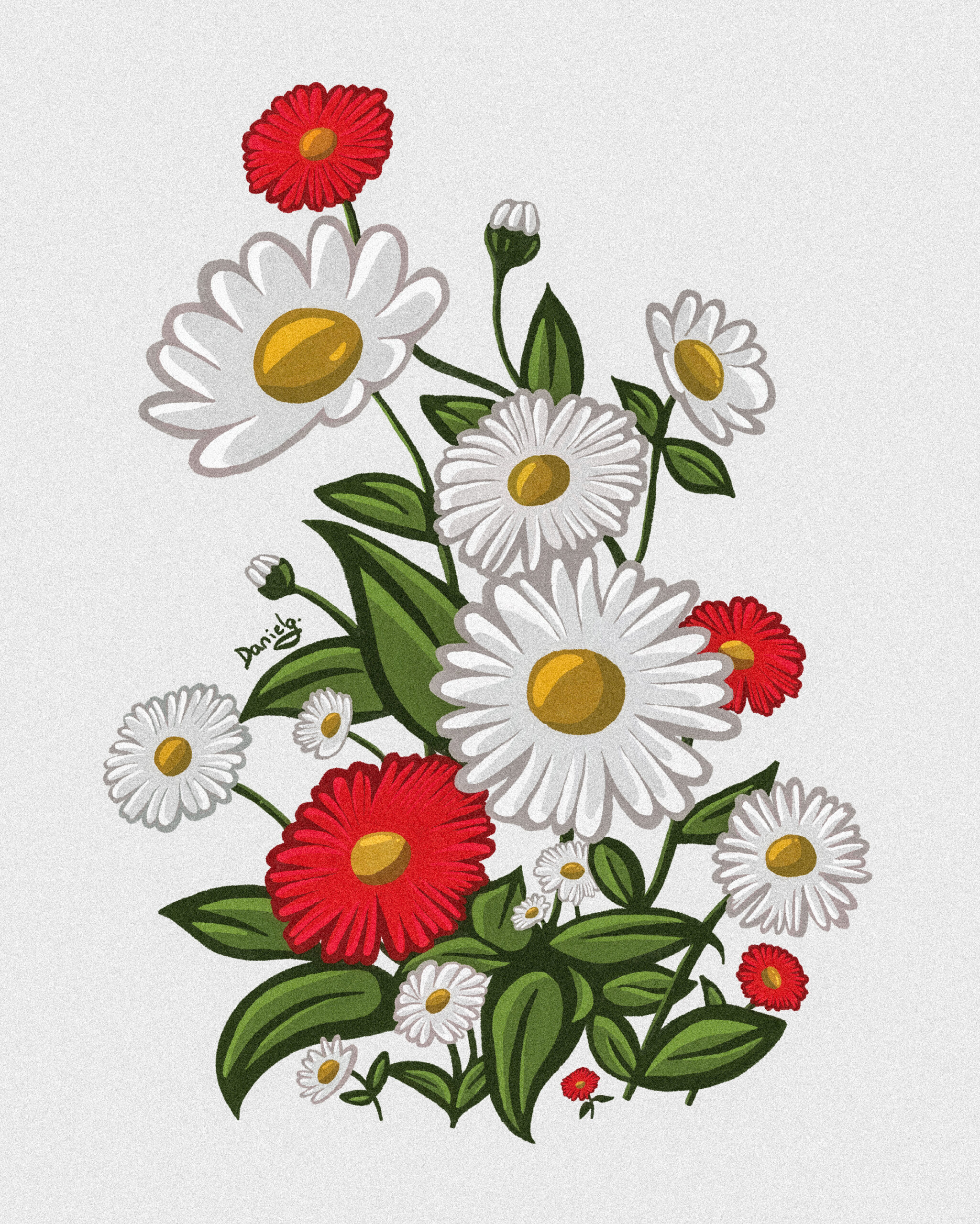 Exploração gráfica de várias plantas e flores através da ilustração digital, utilizando o programa Procreate.